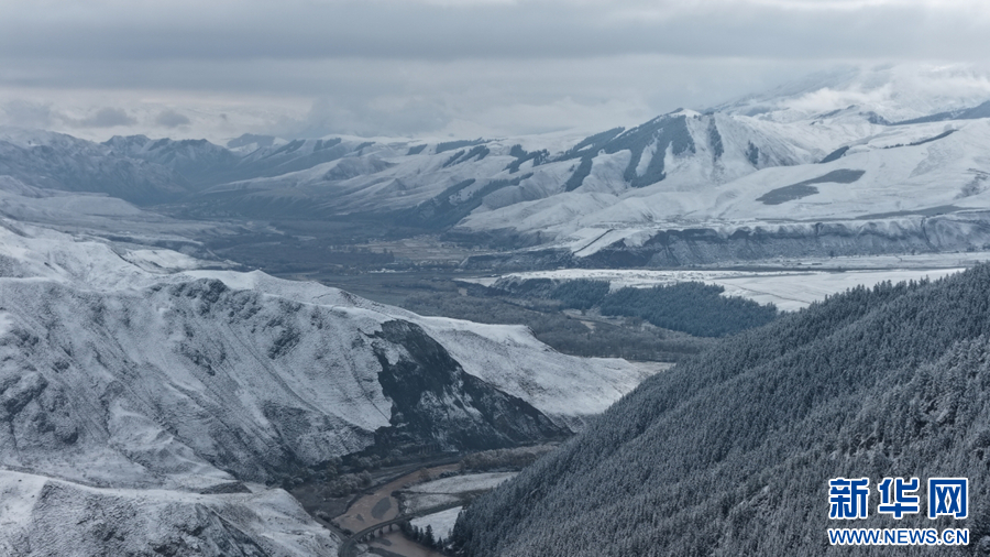 近日,在青海省海北藏族自治州祁连县境内,连绵不绝的祁连山脉被白雪覆盖,大地银装素裹,静谧纯净,尽显壮美山川。