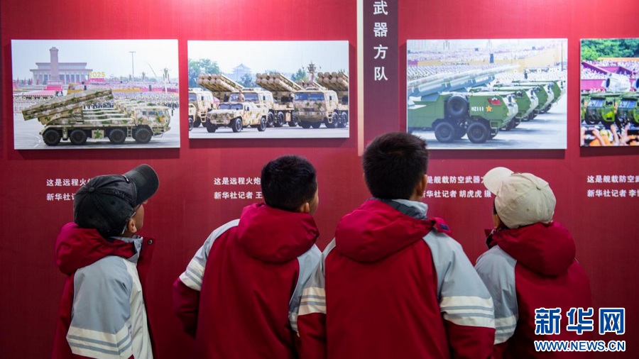 2025年阅兵新华社新闻摄影展格尔木展出现场展出的照片。新华网 潘彬彬 摄