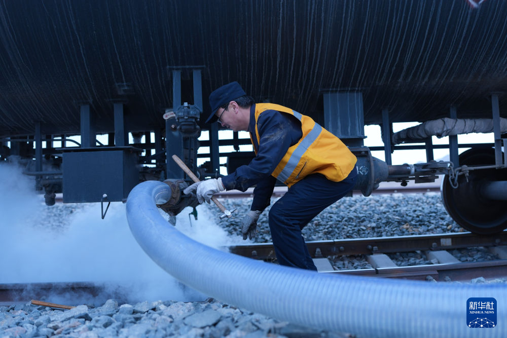 2月5日,韩景泉在给锅炉车注水。新华社记者 张龙 摄
