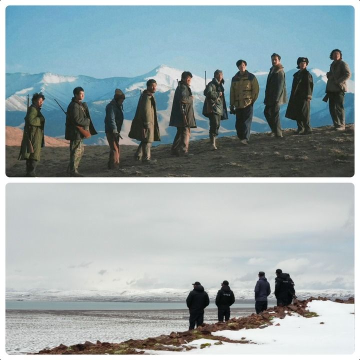 上图为《生命树》剧照,下图为可可西里巡山队员巡护照片。