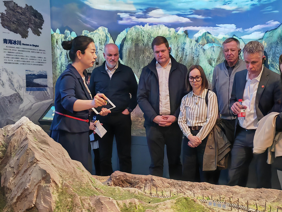 4月3日,奥地利中国友好协会高级代表团正在参观青海省自然资源博物馆。新华社记者 王梓涵 摄